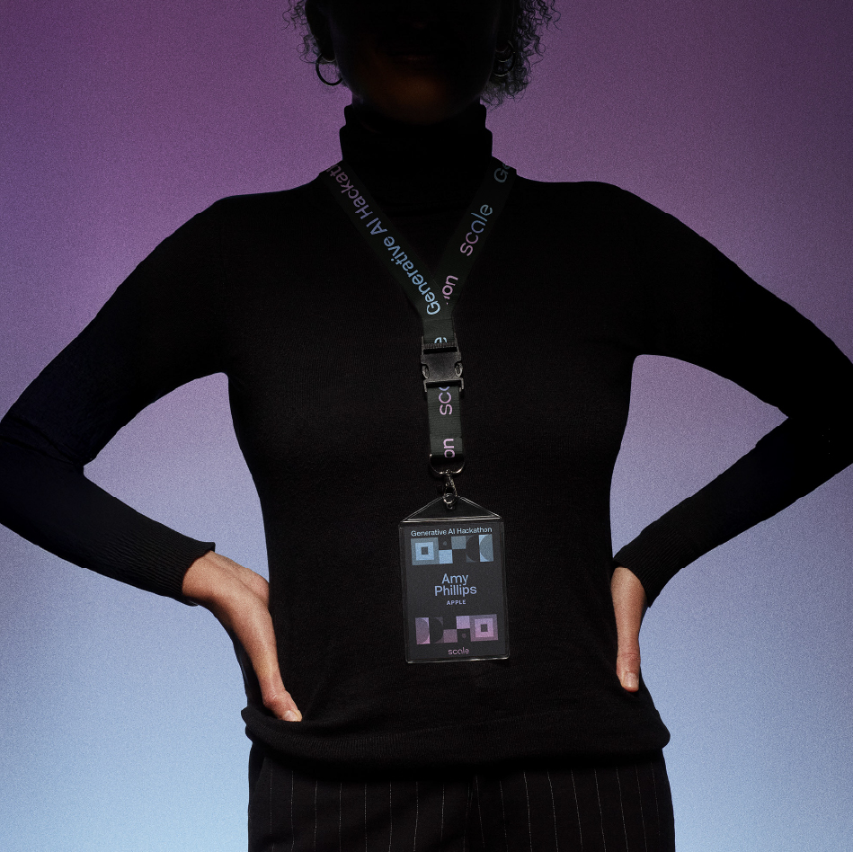 Scale, a $7B+ leader in data labeling and machine learning infrastructure, needed event branding for their Generative AI Hackathon. The challenge: create a visual system that reflects generative AI as a tool that can be used in a vast number of ways. I developed a modular geometric identity inspired by AI building blocks — adaptable, systematic, and optimistic. The brand extended across physical signage, digital assets, swag, and event materials.